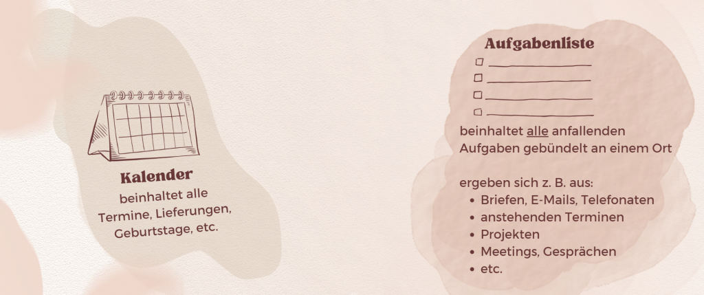 Auch beim Kalender solltest du nicht zwischen dem Küchenkalender an der Wand, dem Schreibtischkalender und dem Outlook oder Handy Kalender wechseln, sondern einen finden, den du gerne nutzt und der vollständig alle deine Termine enthält. Schau einfach, ob du hier eher der analoge oder digitale Typ bist.