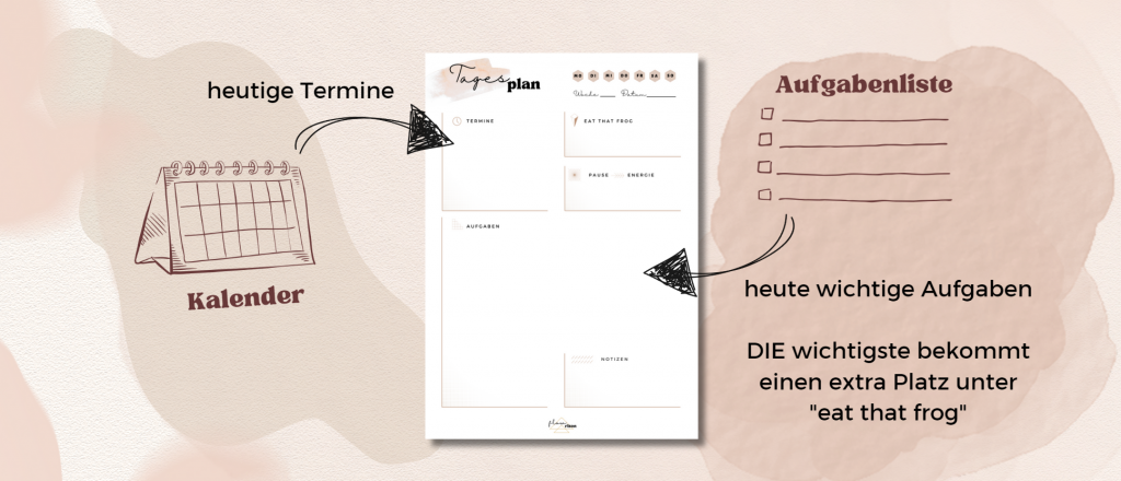 Vielleicht fragst du dich jetzt, warum sollte ich mir die Arbeit machen, einen Tagesplan zu erstellen, wenn ich doch meinen Kalender und meine To-Do-Liste habe?!